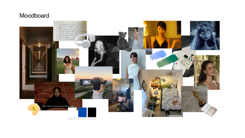 J’ai choisi une mise en scène simple et intime : un plan fixe, une caméra posée face au personnage, comme une confession filmée ou une vidéo YouTube. Je voulais donner l’impression que le spectateur était convié à une discussion personnelle, comme avec un ami à qui l’on se livre. Cette forme crée une proximité immédiate et brise le quatrième mur. Elle évoque aussi la culture numérique actuelle : journaux filmés, vlogs, contenus intimes partagés en ligne. En parallèle de cette simplicité volontaire, le film explore des séquences plus oniriques. Hinaa se projette dans un couloir où chaque porte ouvre sur une version d’elle-même : l’écrivaine au bord de la mer, la réalisatrice qui reçoit un Oscar, la chanteuse sur scène, la voyageuse libre. Ces scènes, inspirées notamment par le clip “Chihiro” de Billie Eilish, traduisent visuellement ce que l’on ressent lorsqu’on se projette dans des vies multiples sans jamais en choisir une.